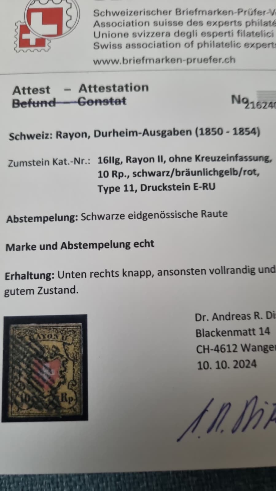 1850 Rayon 16 IIg Typ 11 Druckstein E - RU mit Attest Disteli
