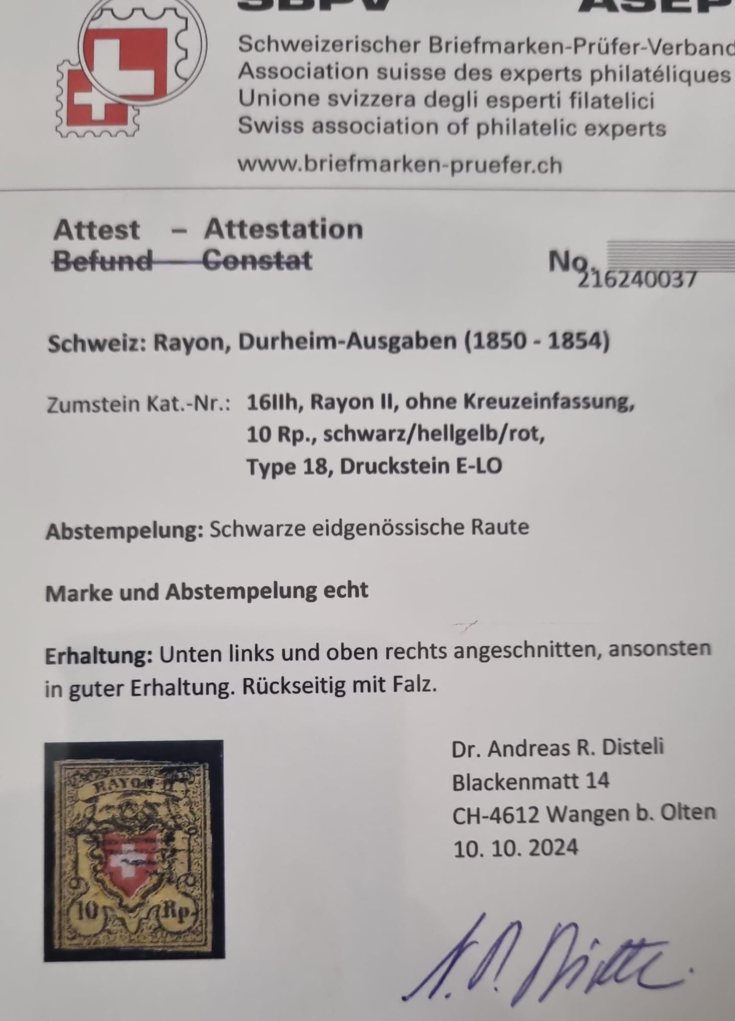 1850 Rayon 16 IIh Typ 18 Druckstein E-LO