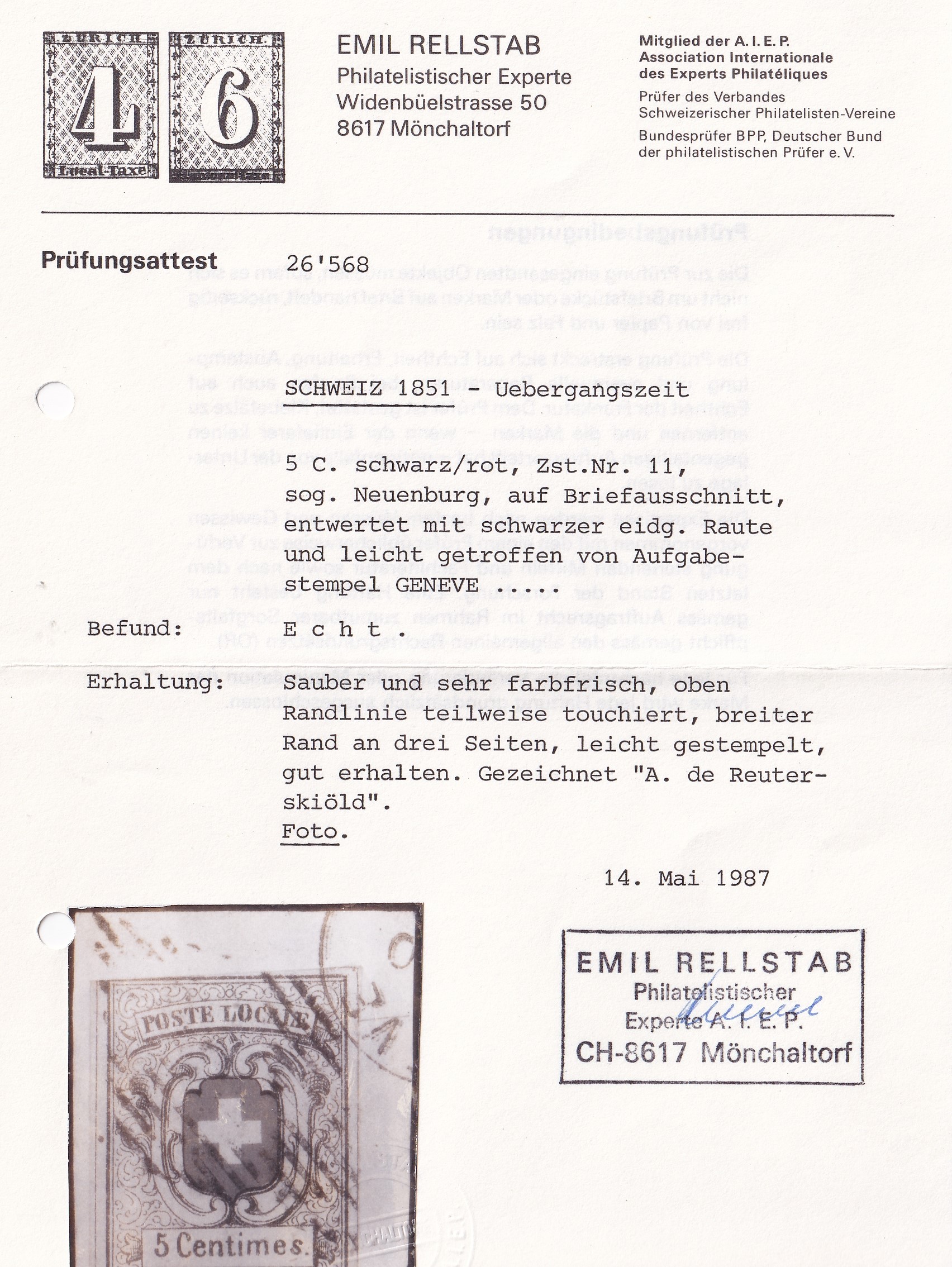 | Schweizerischer Briefmarken Katalog: | SBK.Nr. 11 |