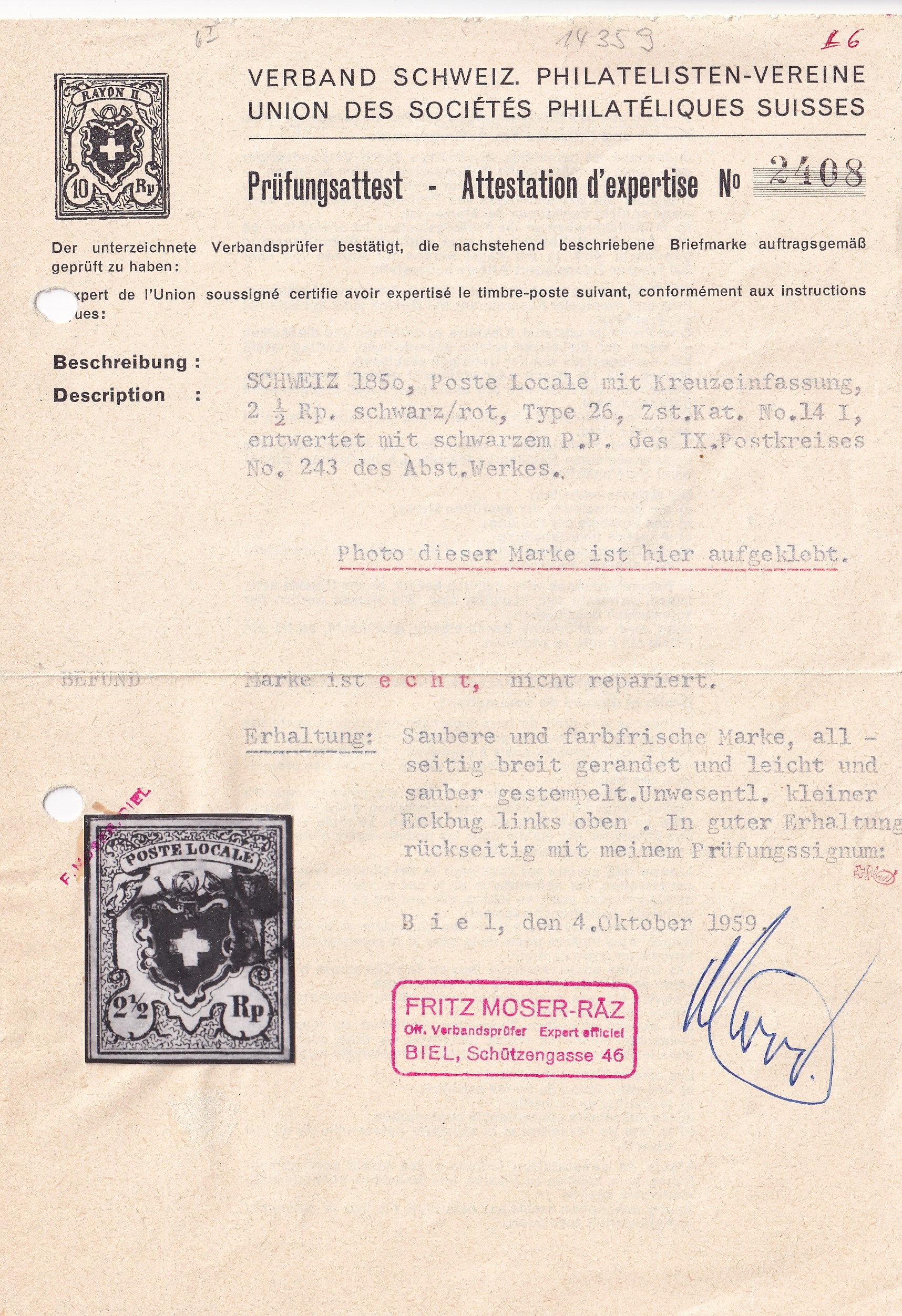 | Schweizerischer Briefmarken Katalog: | SBK.Nr. 14I |