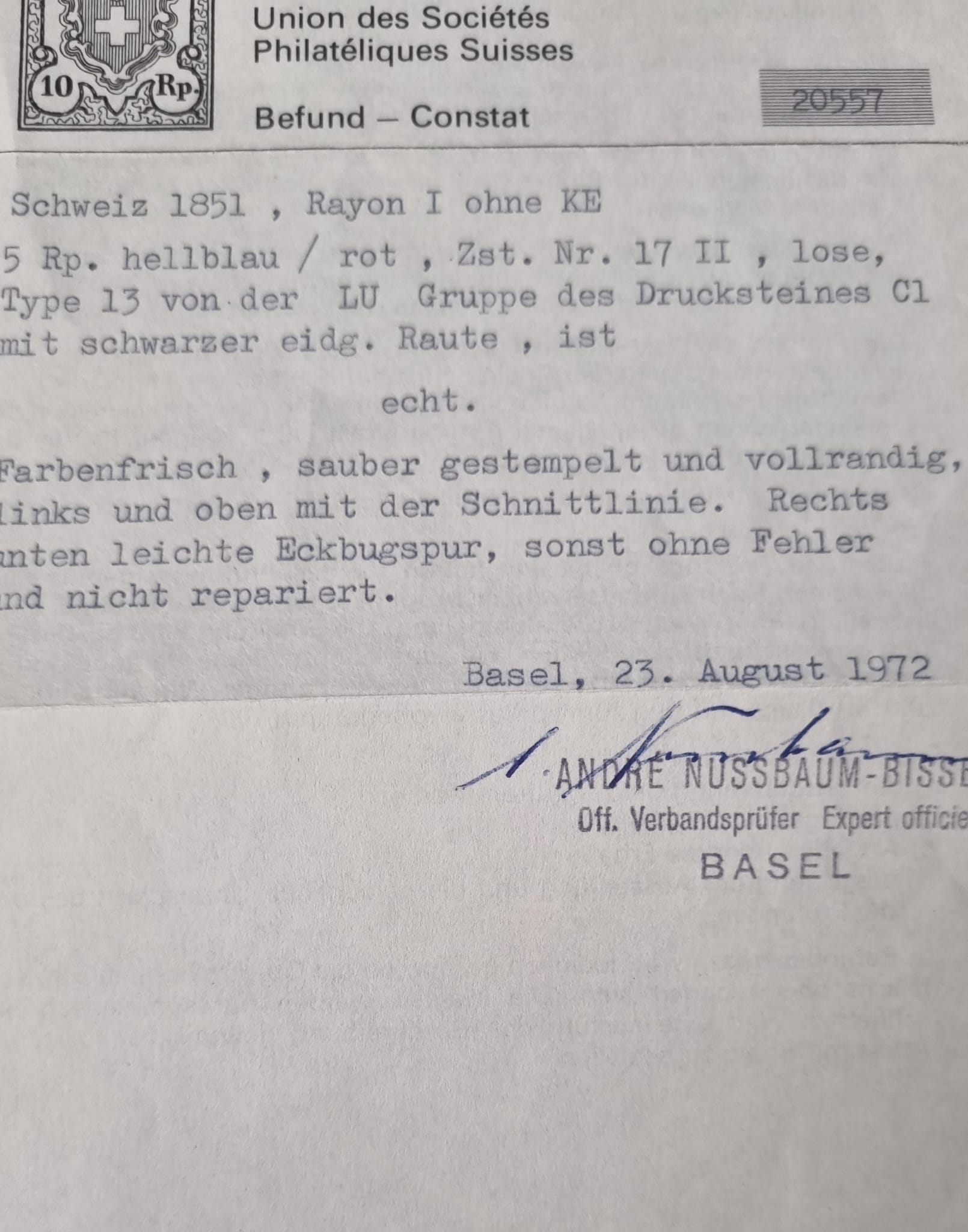 | Entwertung (gestempelt): | Schwarze Eidgenössische Raute |