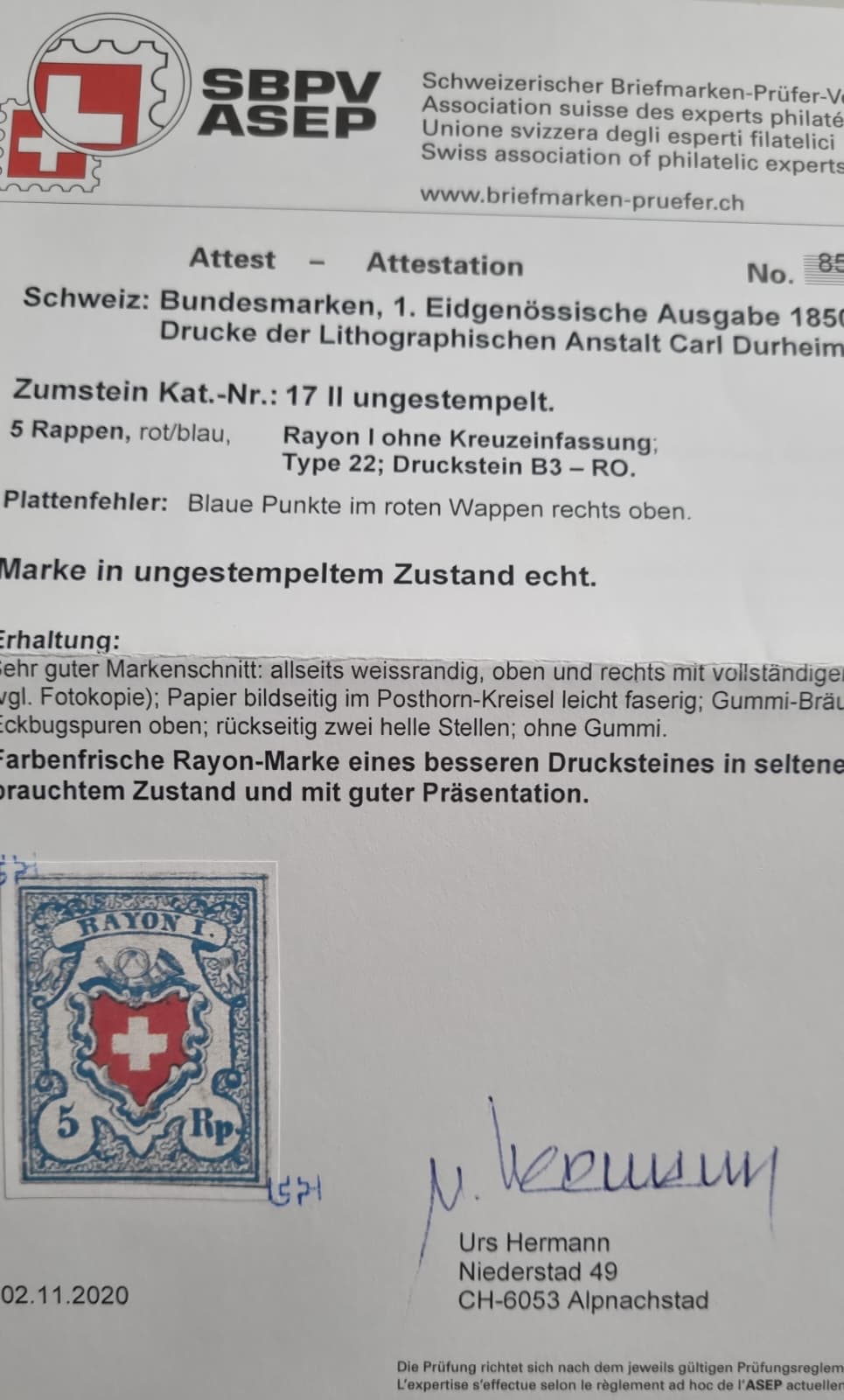 Rayon 17 II ungestempelt mit Attest