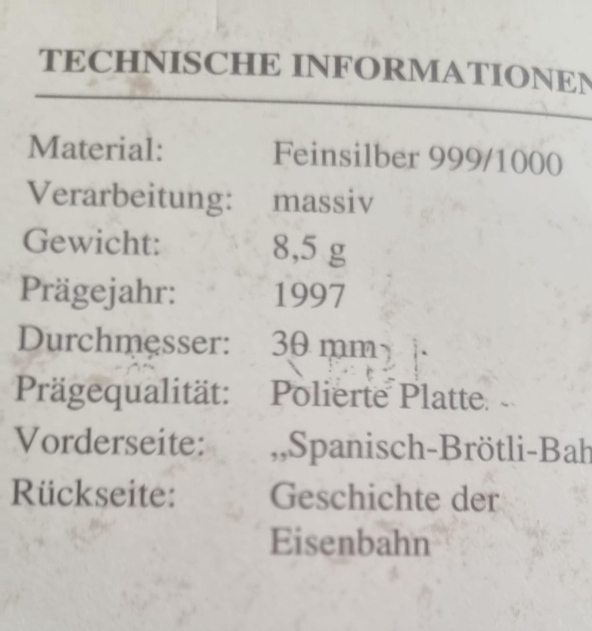 Spanisch Brötlibahn Silbermünze