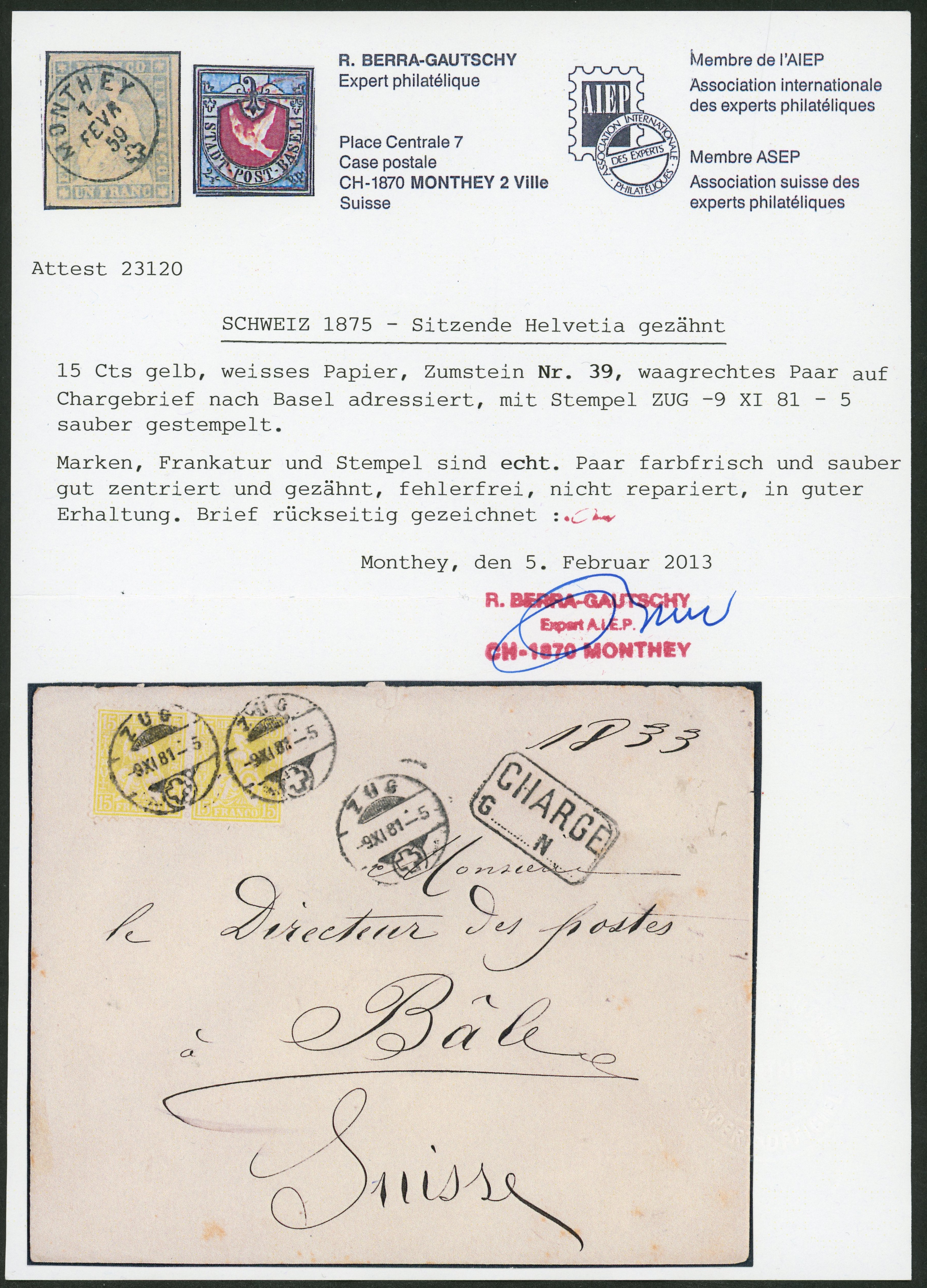 Produktinformationen "Sitzende Helvetia Gezähnt auf Brief im Paar"