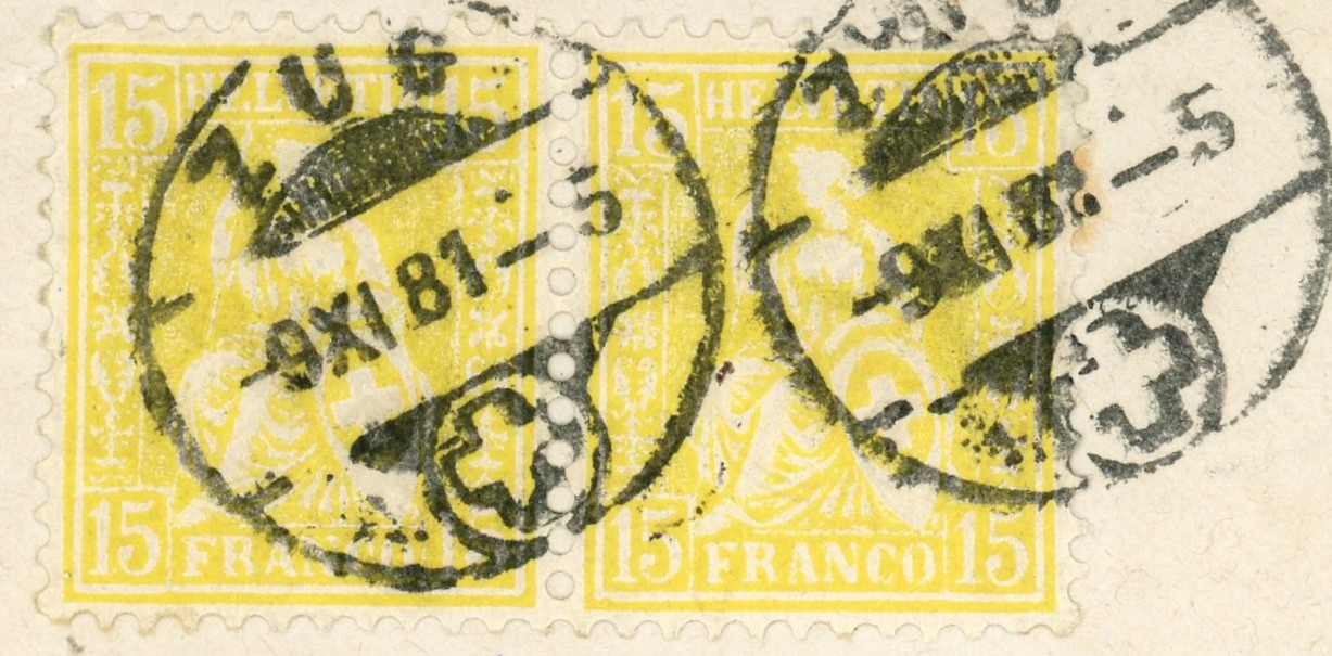 Sitzende Helvetia Gezähnt auf Brief im Paar