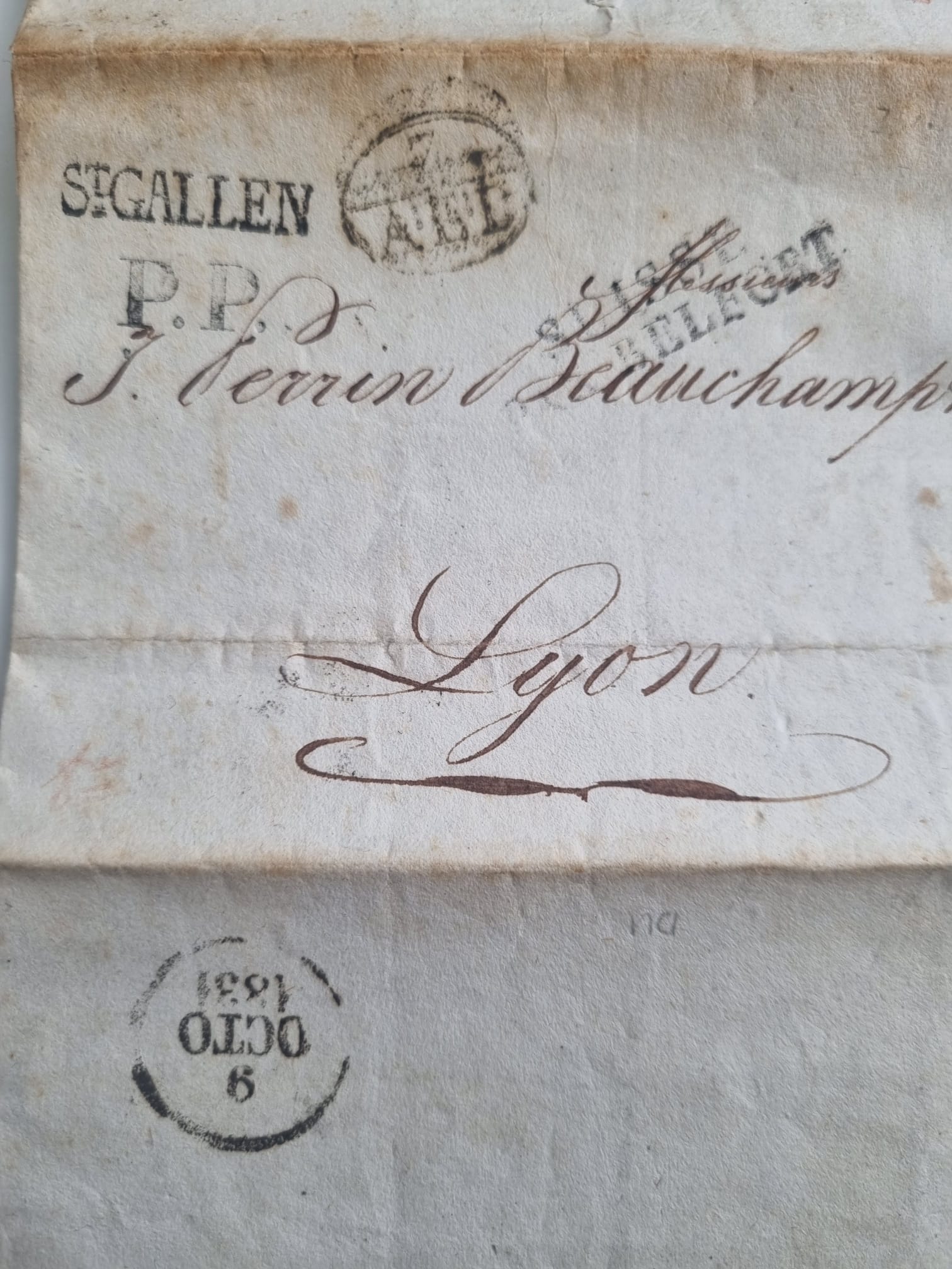 1831 Seltener Francobrief vom 3.10.1831 von St.Gallen WI3250 nach Lyon