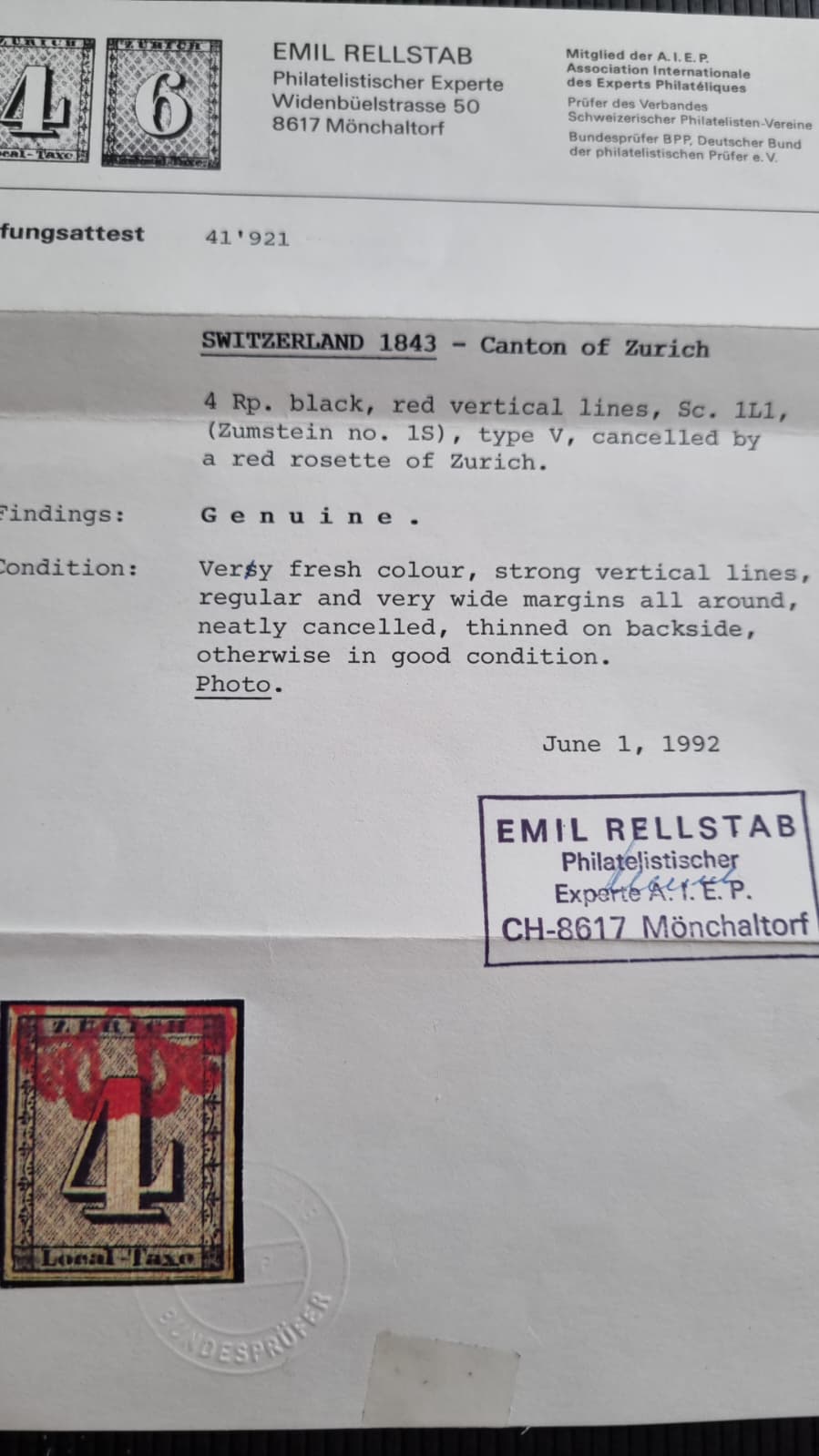 Eine seltene Zürich 4 S mit Attest von Emil Rellstab