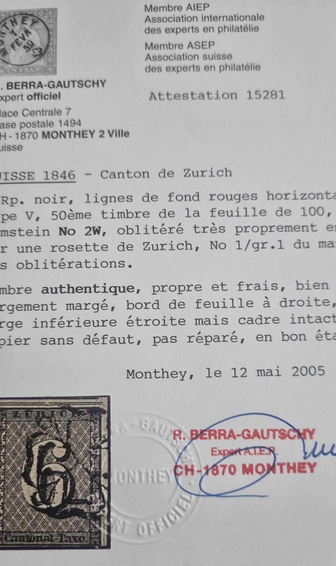 | Schweizerischer Briefmarken Katalog: | SBK Nr. 2W |