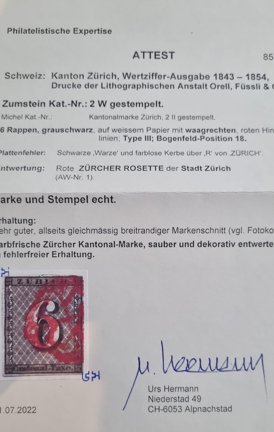Eine schöne Zürich 6 Typ III Postition 18