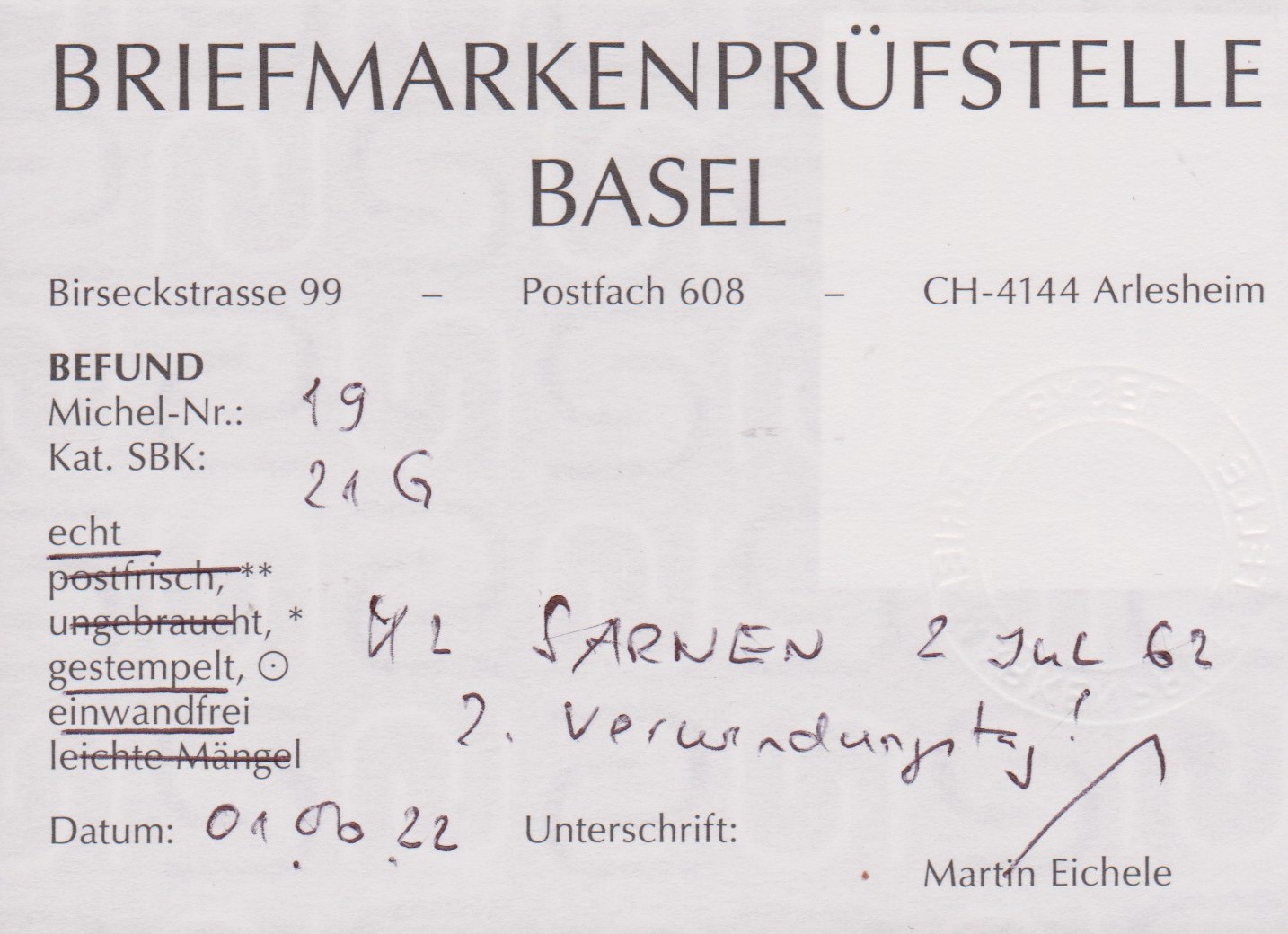 Produktinformationen "Zumstein Katalog-Nummer. 21G Gestempelt +Befund "